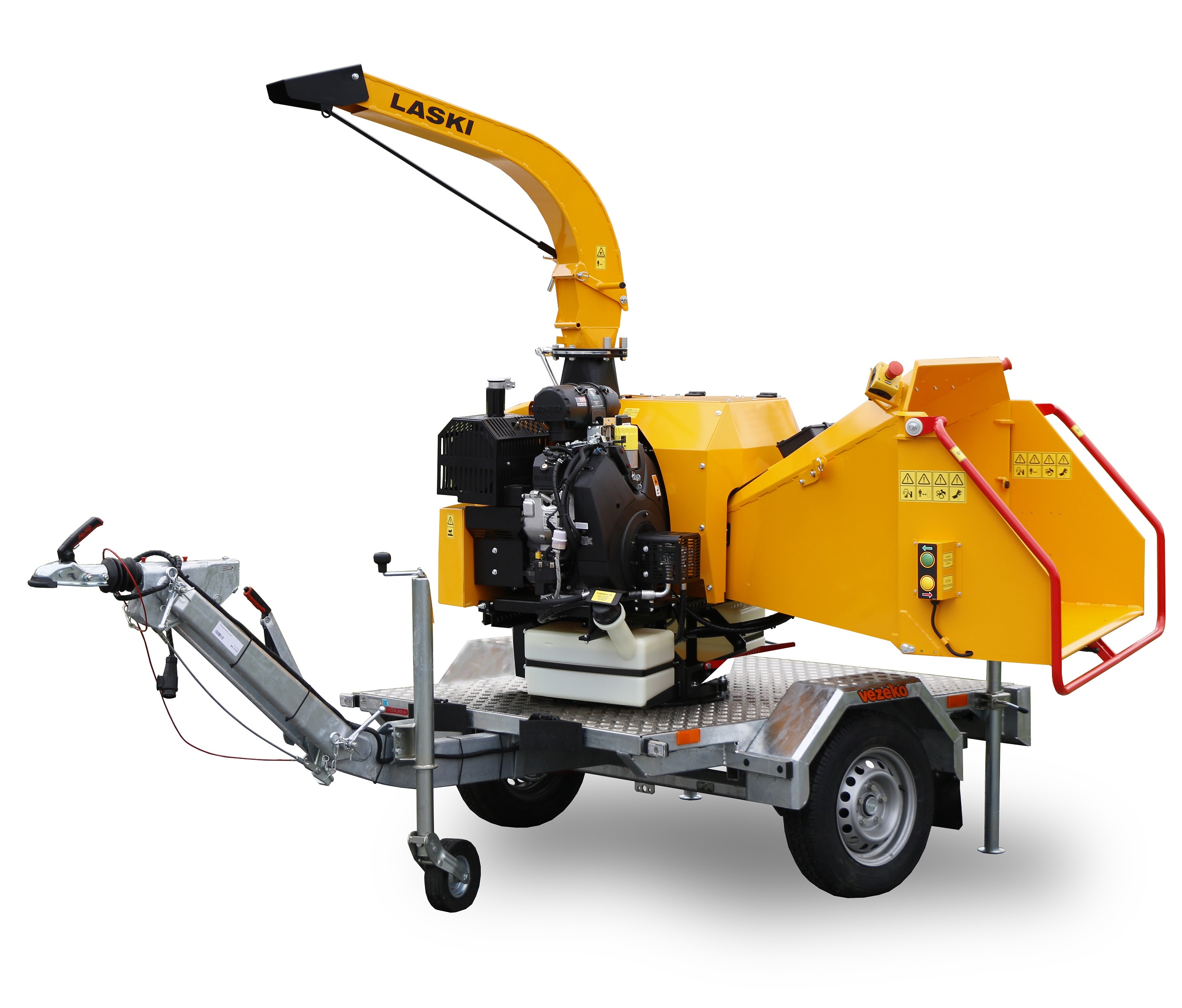 Dieser Buschholzhäcksler mit einer Anlaufbremse kann an ein Zugmittel (auch PKW) angekoppelt werden. Bei einem Straßenzug bis 3,5 t sollte der Fahrer eine Fahrerlaubnis mindestens von der Gruppe B haben.